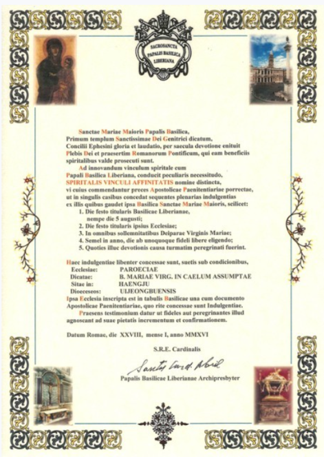리베리오 교황 (360경)대성당과의 영적 유대감을 새롭게 하기 위해서는 영적 친화의 은총이라는 이름으로 구별되는 특별한 관계가 도움이 되며, 이를 위해 사도 내사원에 드리는 기도가 권장되며, 각각의 경우에 성모 마리아 대성당 자체가 누리고 있는 것과 동일한 면죄부를 다음과 같이 부여할 수 있다.